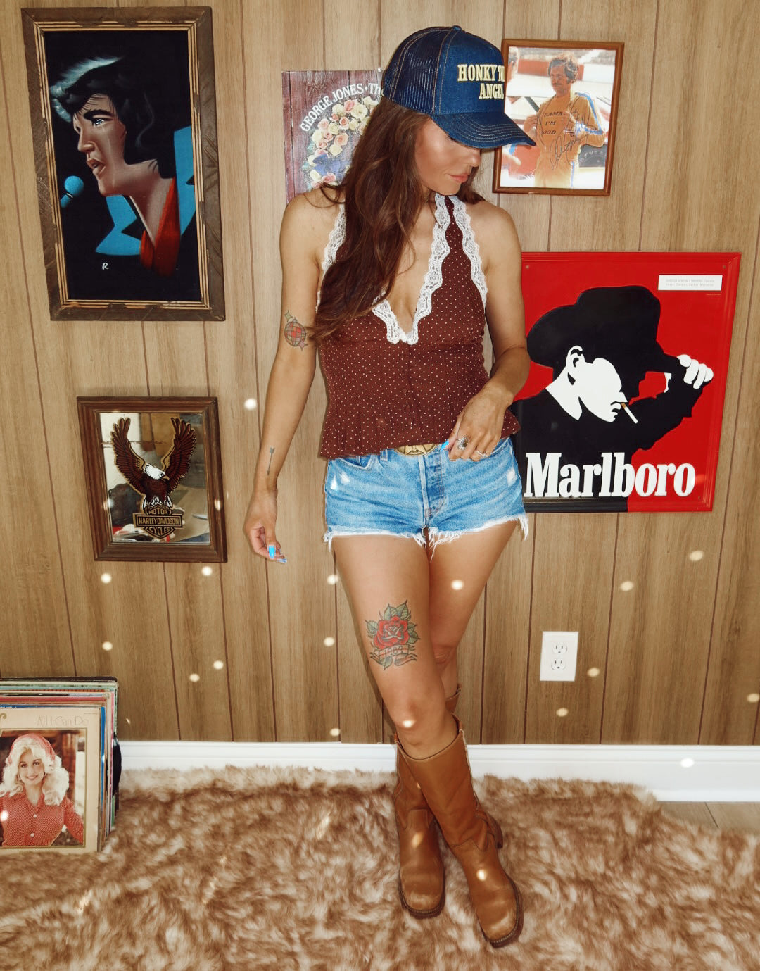 The SWEETEST lil brown lace halter and it's giving all the Country Girl charm vibes!