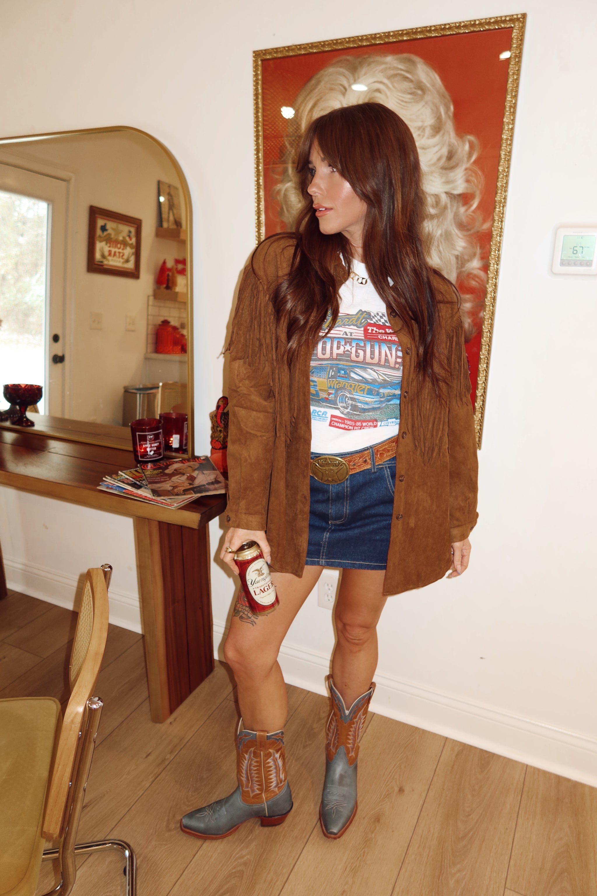This Suede Fringe beauty is giving all the Retro Western Vibes y'all!